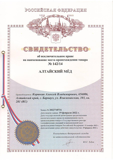 Такое свидетельство даёт право использовать на упаковке и в маркировке наименование «Алтайский мёд» и защищает компанию от недобросовестной конкуренции. Это значит, что никакая другая организация, не обладающая аналогичным правом, не может на законных основаниях использовать это наименование. На сегодняшний день в России всего около 20 компаний получили такое право — и «Гордость Алтая» входит в их число.